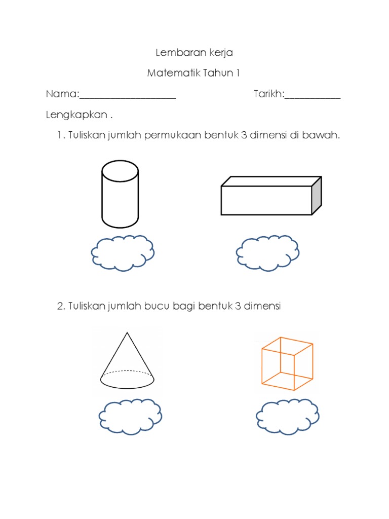 Bentuk 3d Tahun 1 Lembaran Kerja